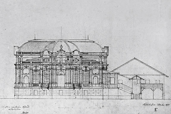 In 1870, under the supervision of the court building director Georg Dollmann, a wing with a single axis was added (building phase 2). While this extension was still being completed, the original plans for the building were substantially revised.